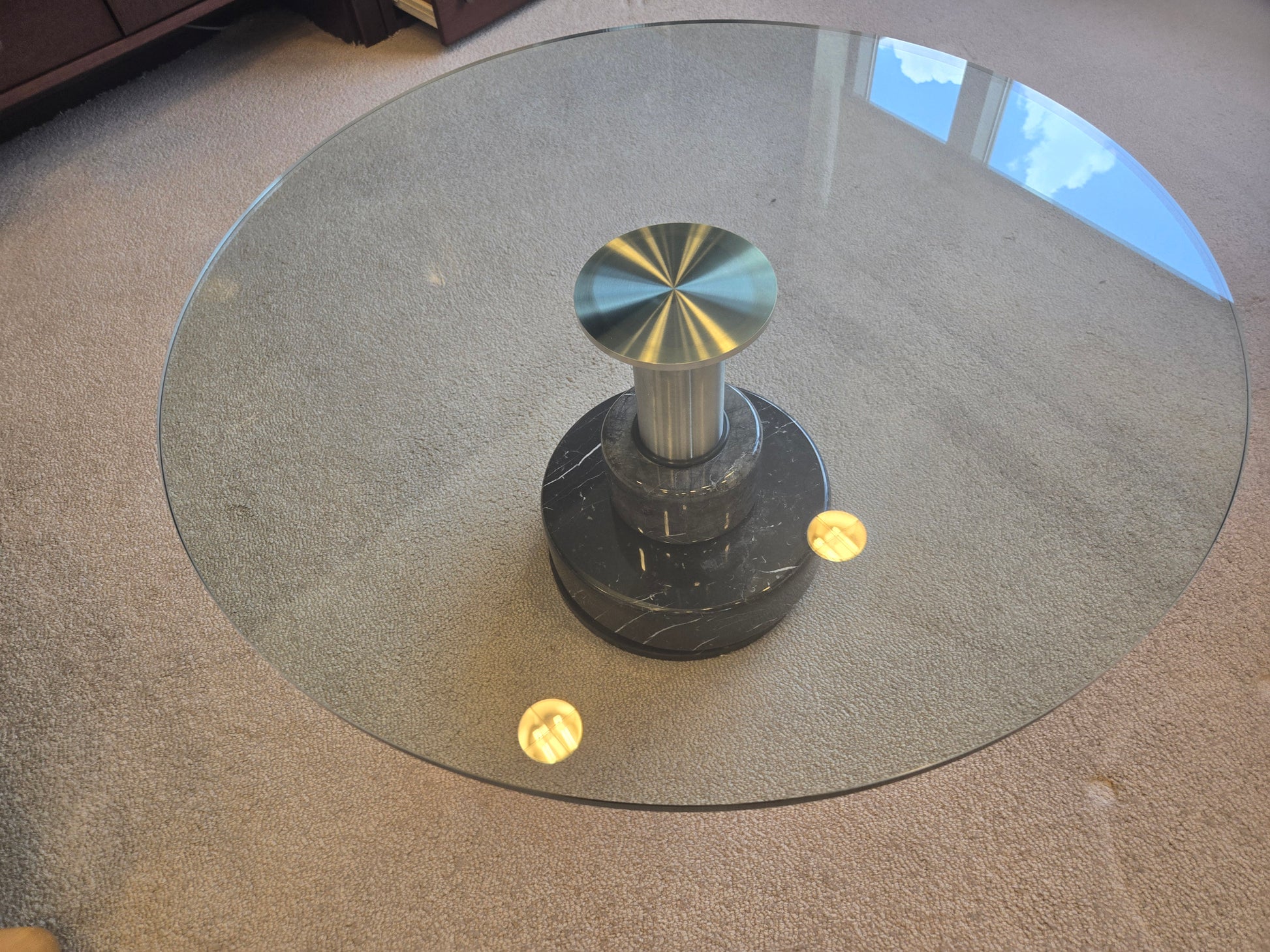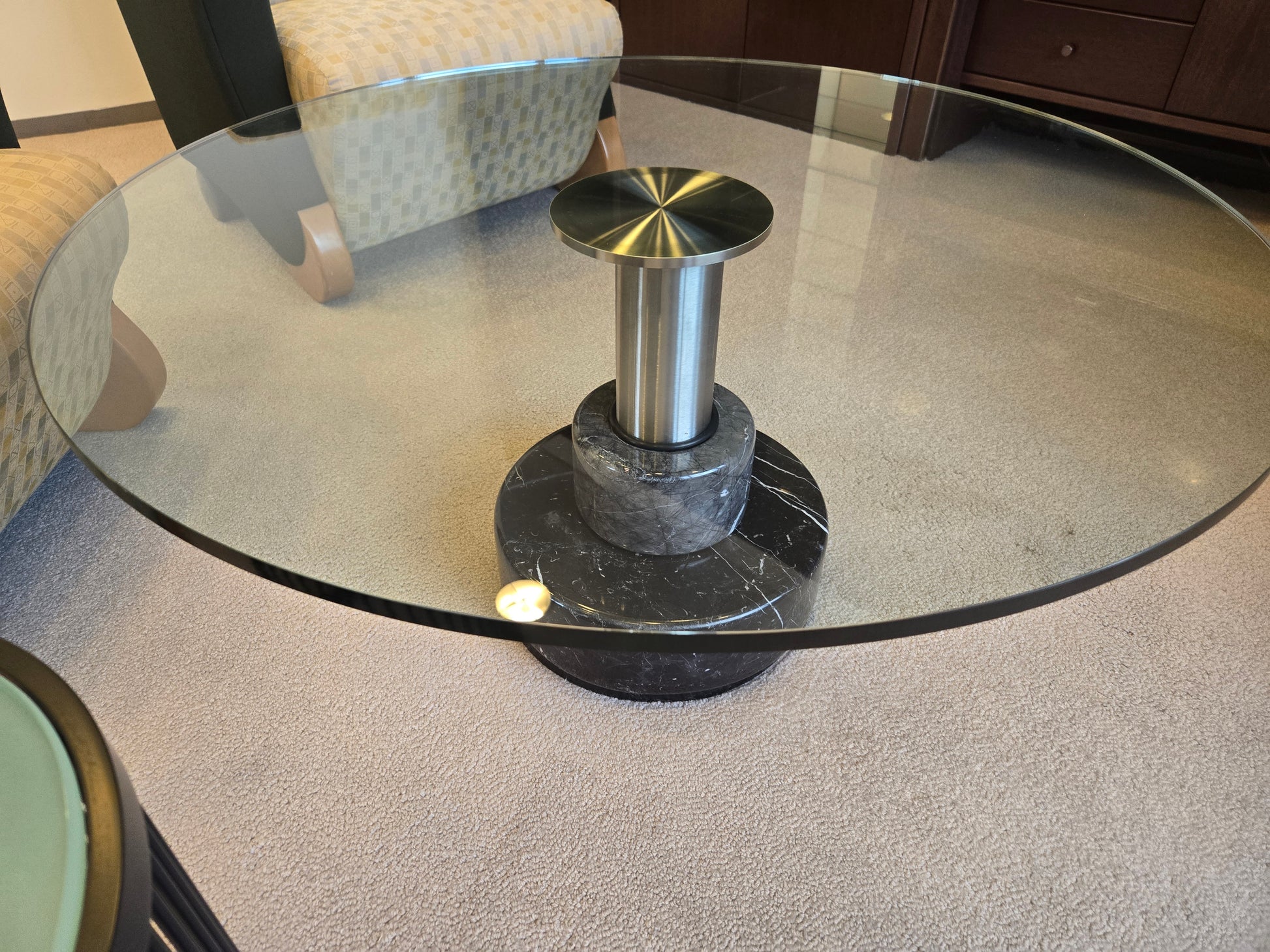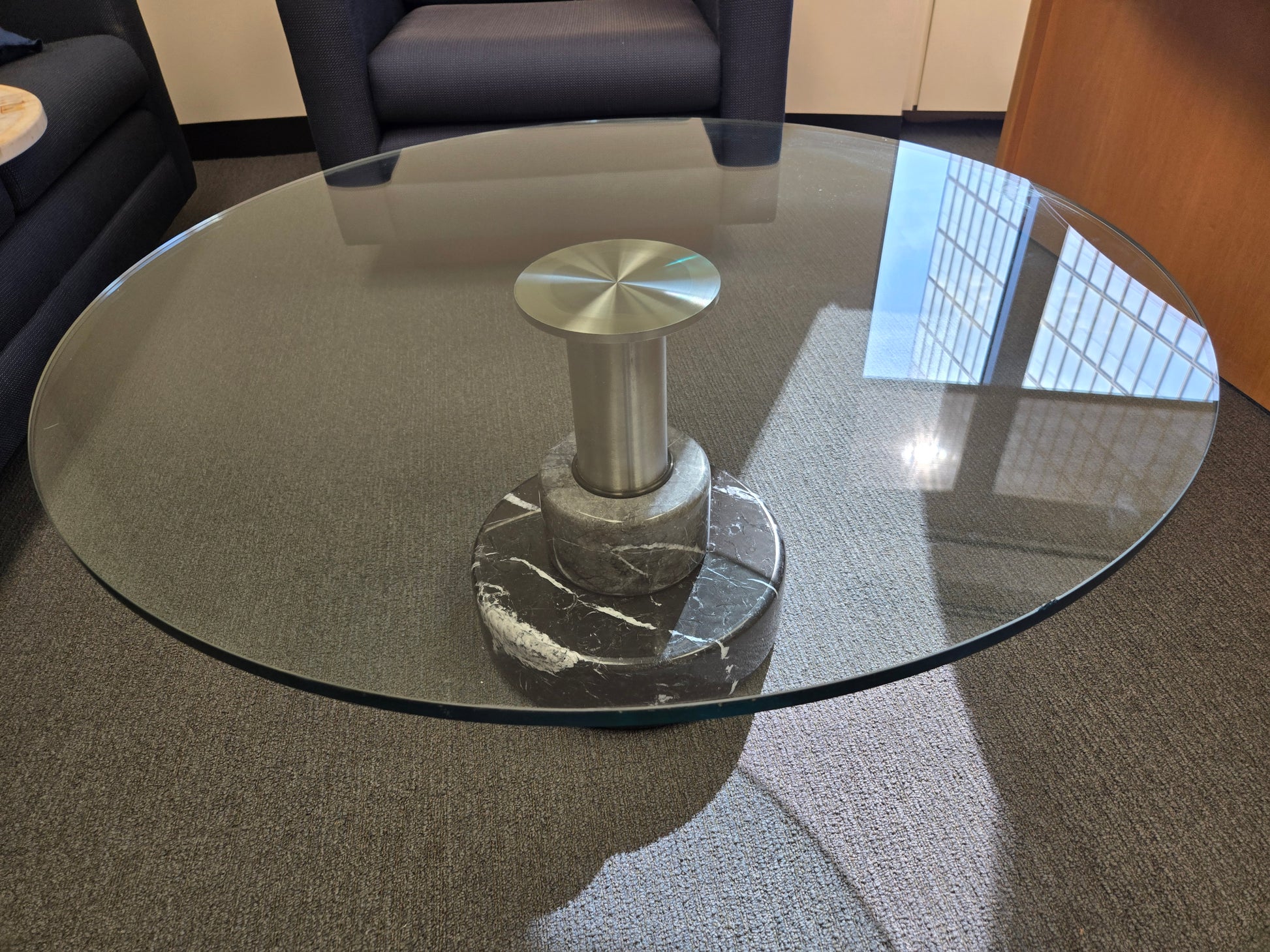 The Acerbis Menhir Glass Coffee Table is a striking piece that combines sculptural design with refined materials. Featuring a thick, transparent glass top, the table rests on a bold, cylindrical stone base, creating a dramatic balance between lightness and mass.