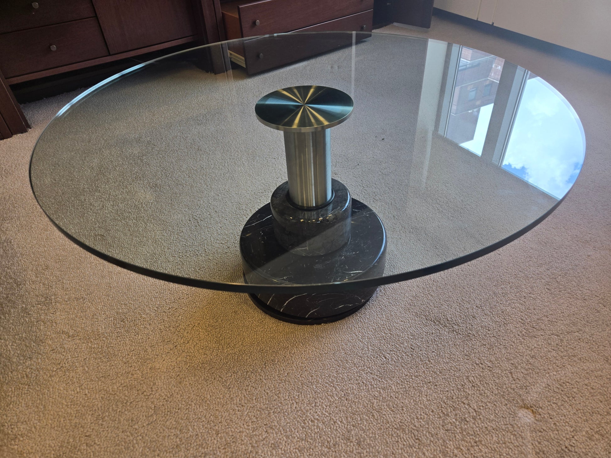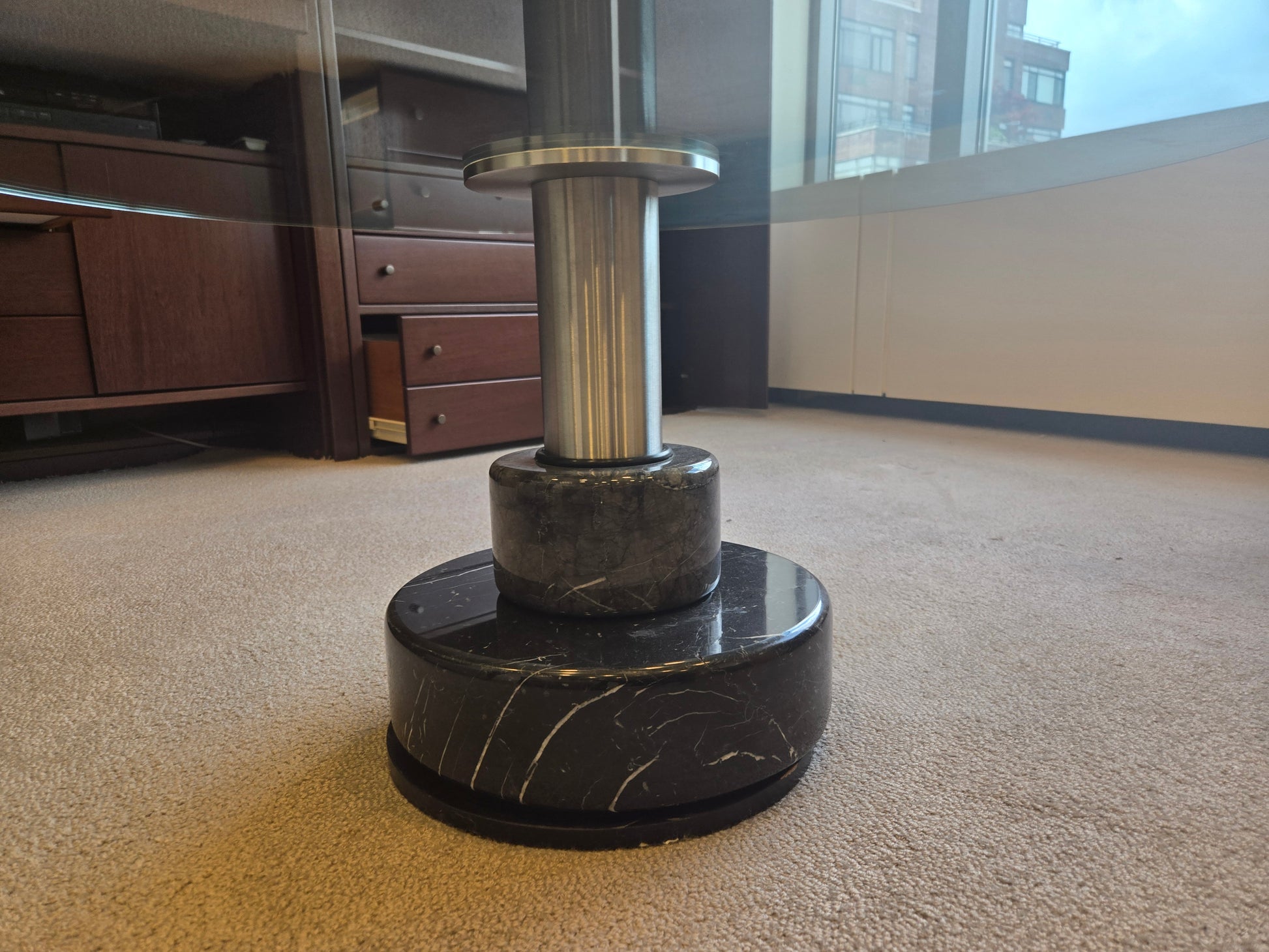 Originally designed in the 1980s, the Menhir table reflects Acerbis’s commitment to architectural form and timeless elegance. Its clean geometry and contrast of materials make it a standout centerpiece in any modern living space, offering both visual impact and functional surface area.