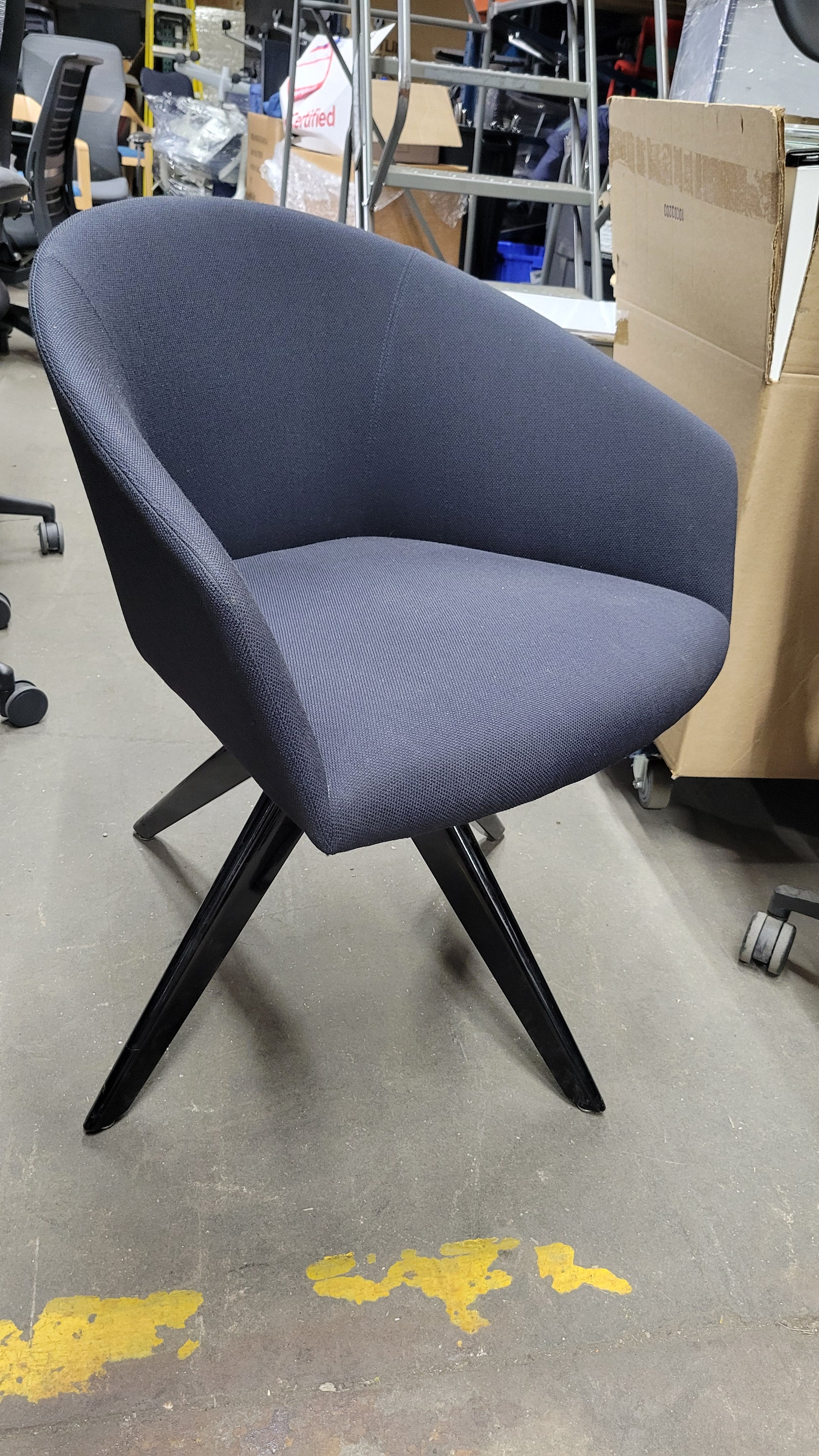 The chair’s generous proportions and smooth 360-degree swivel motion make it ideal for lounge, reception, or executive spaces. Upholstered in dark grey fabric, it offers both visual warmth and modern sophistication.