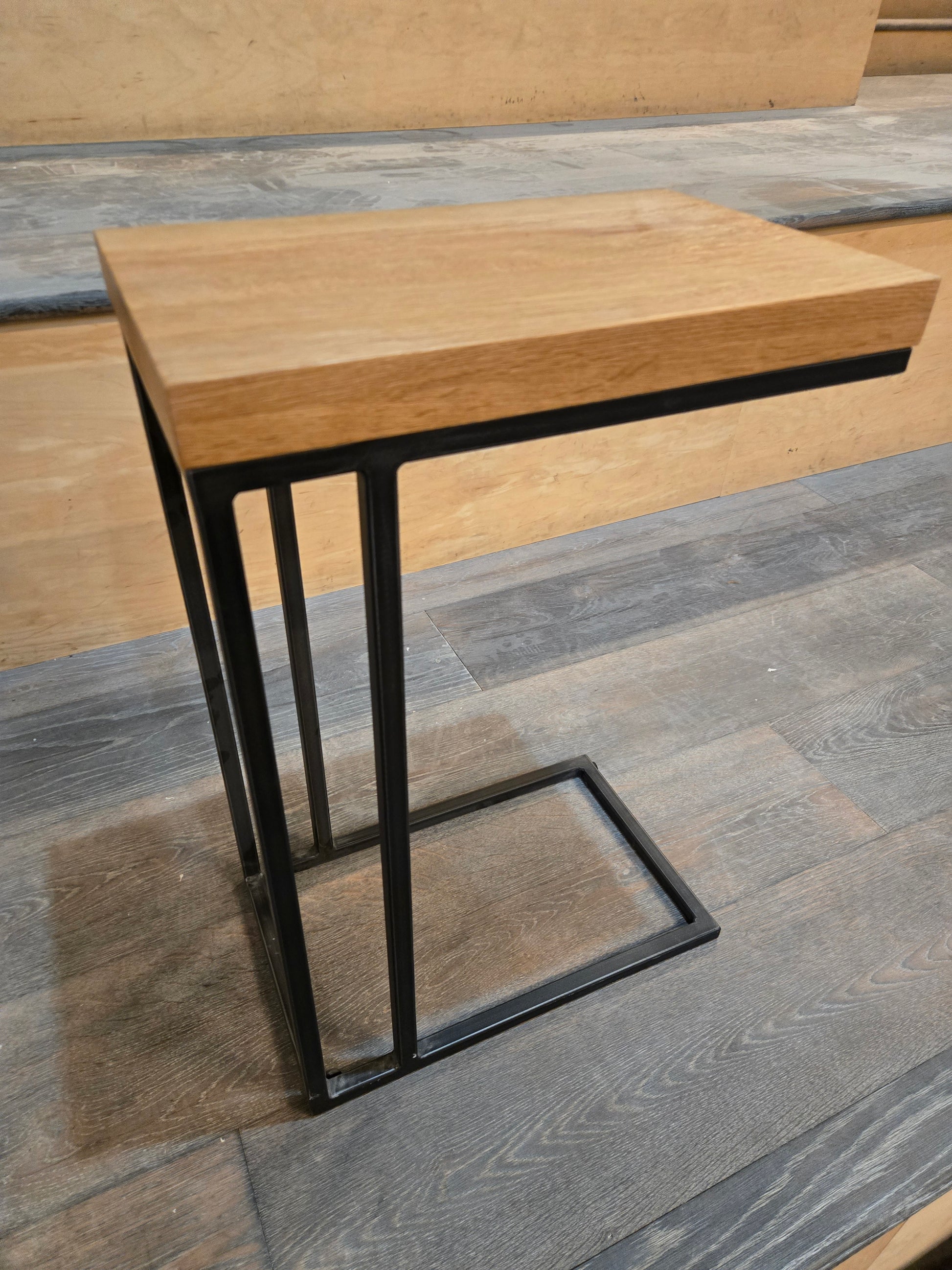 The Taiga side table from Article blends warm solid oak with a lean black steel frame to create a versatile and stylish accent piece. Its cantilevered, open base design allows it to slide near seating or float independently, making it ideal for modern living rooms or compact spaces.