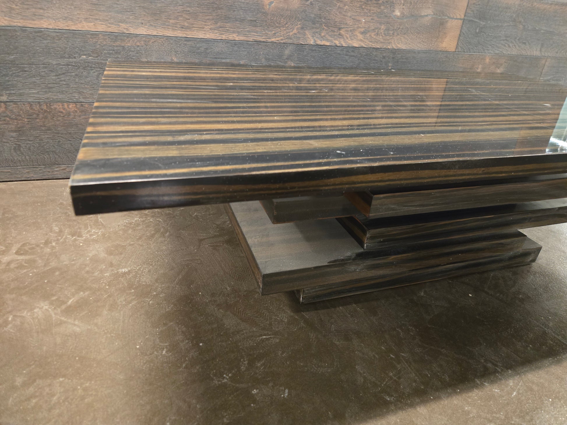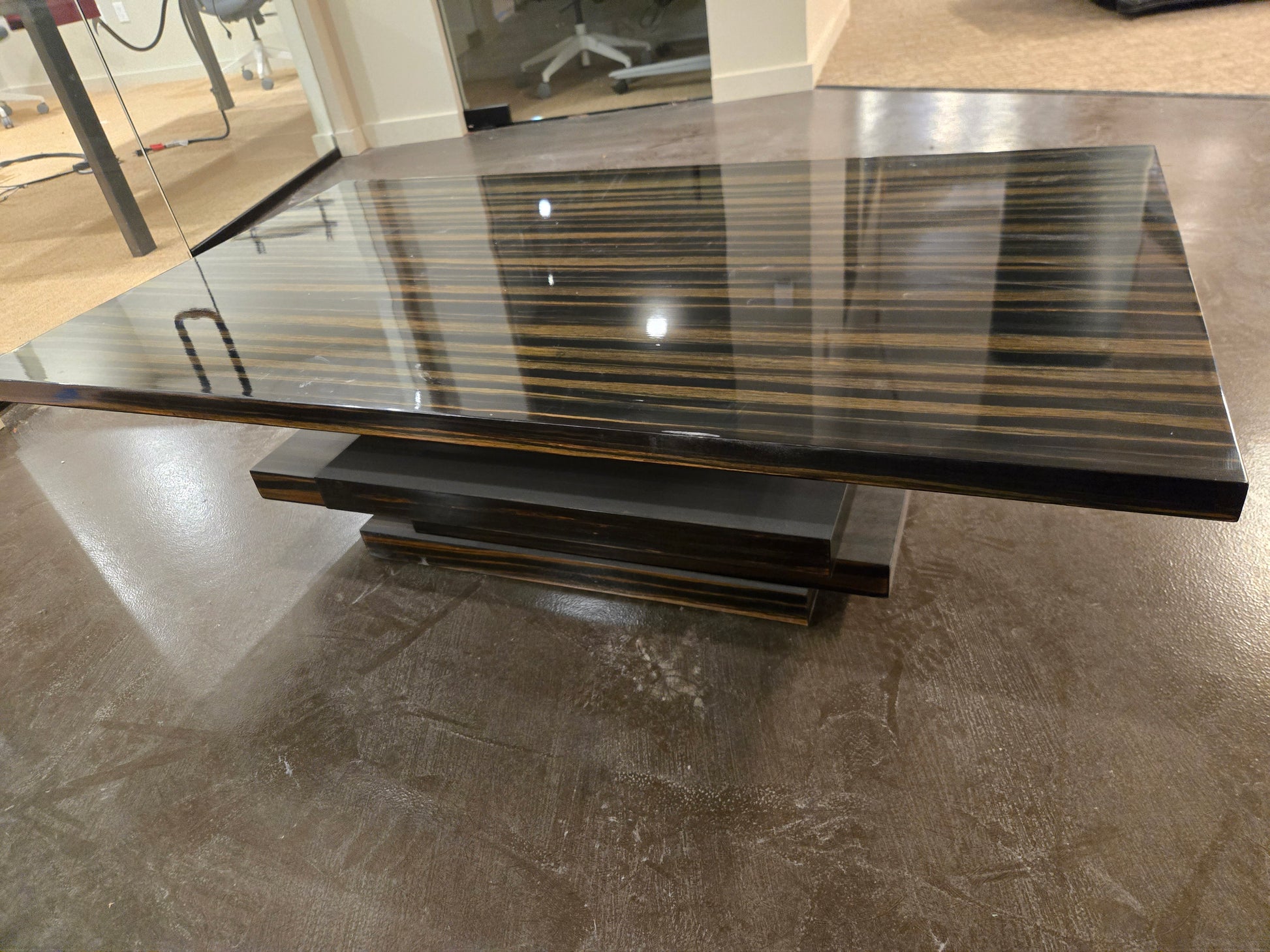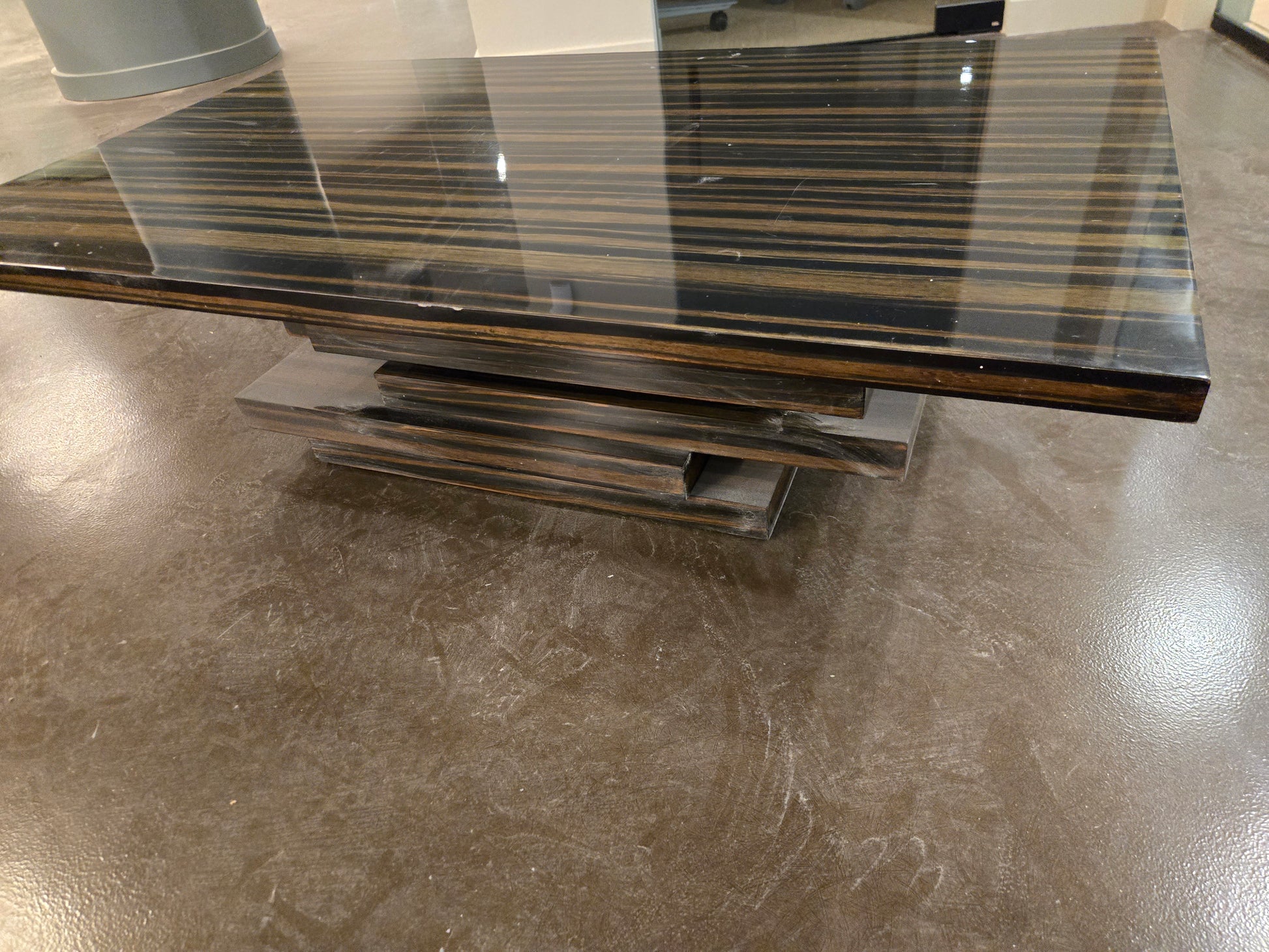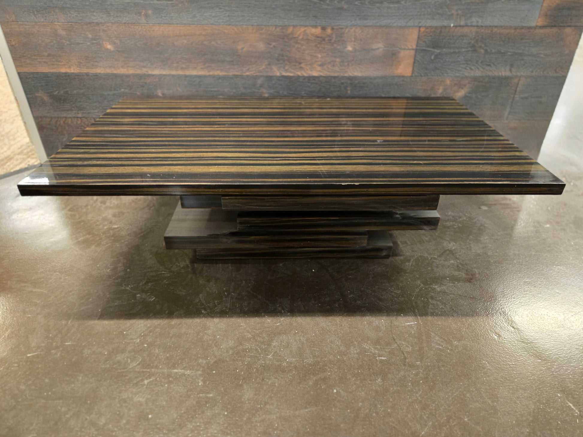 The CB2 Stack Hi-Gloss Wood Coffee Table is a bold modern design that combines clean geometry with a reflective finish. Built from layered high-gloss wood panels, it has a sculptural stacked profile that functions beautifully as both a coffee table and a statement piece.