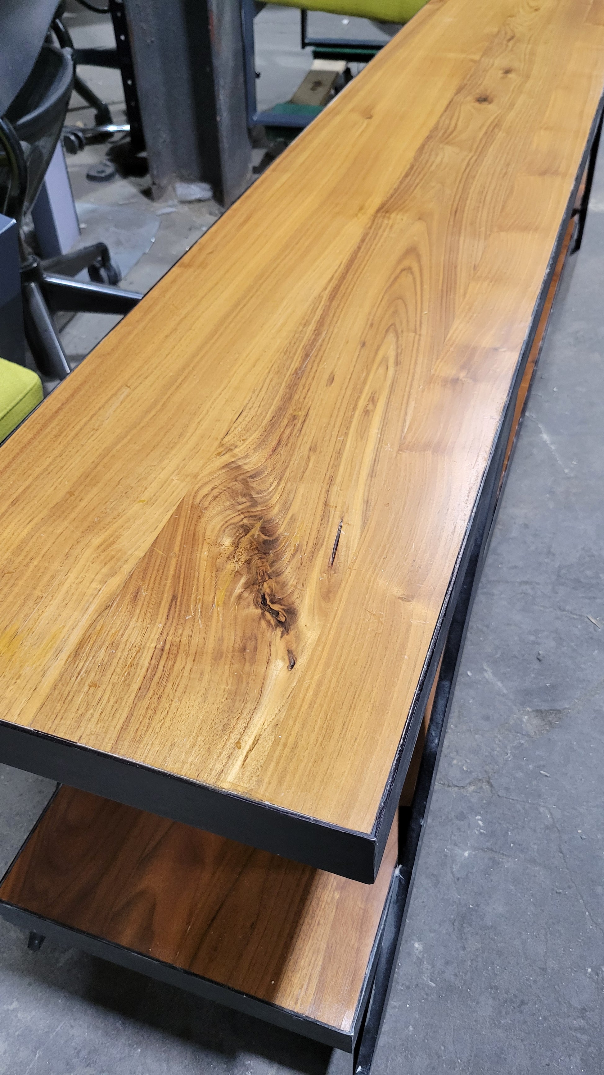 This Irondale Media Console from Crate & Barrel combines industrial strength with warm textures for a stylish, functional storage solution. With a wrought-iron frame and natural wood shelves, it brings a balanced mix of robustness and refined aesthetics.