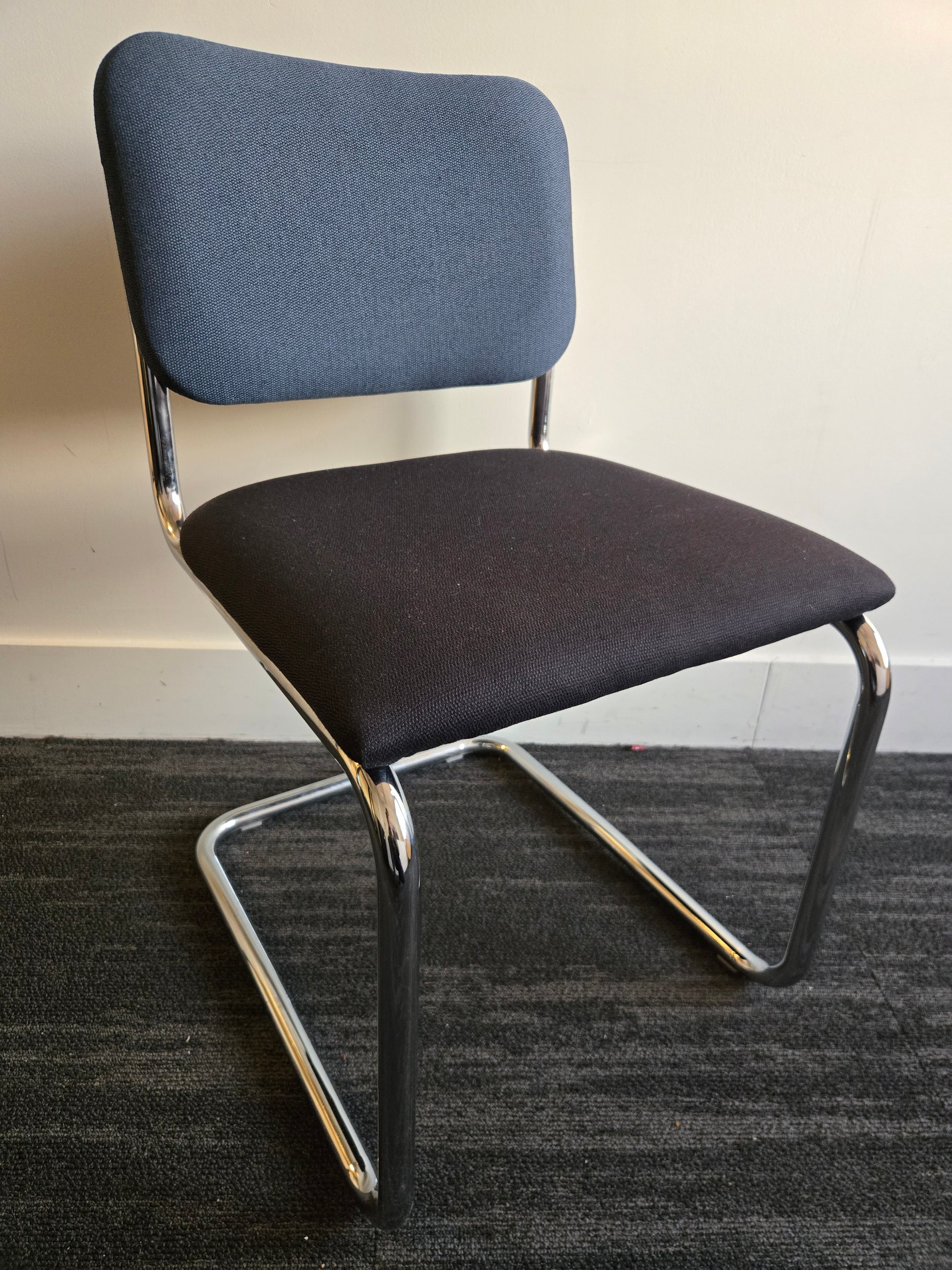 Knoll Cesca Upholstered Side Chair with Black Seat and Blue Back