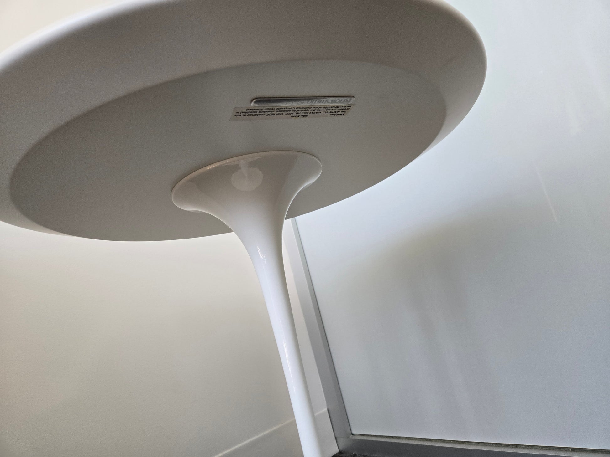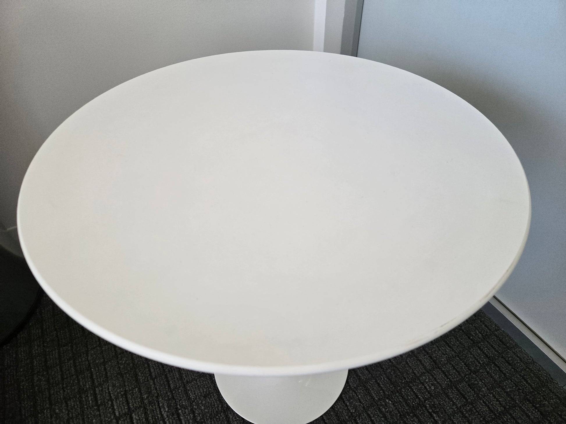 The Knoll Saarinen Tulip 20-inch round side table in white laminate is a modern classic that reflects Eero Saarinen’s vision of eliminating visual clutter through pure, sculptural design. With its smooth white laminate top and elegant pedestal base in cast aluminum, the table creates a clean, seamless silhouette that brings a sense of lightness and clarity to any interior.