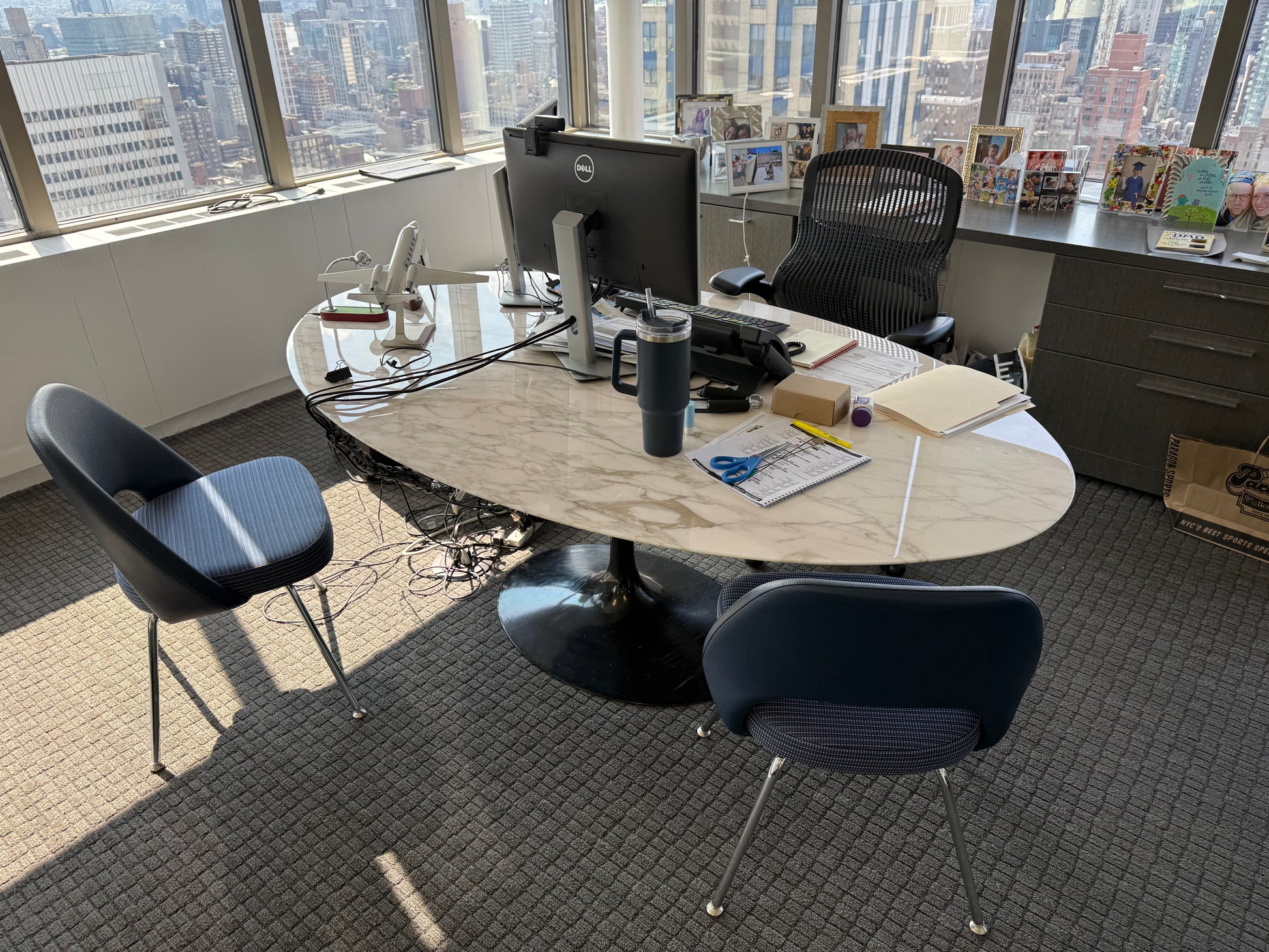 Knoll Saarinen Oval 78-in Marble Table with Cream Top and Black Base