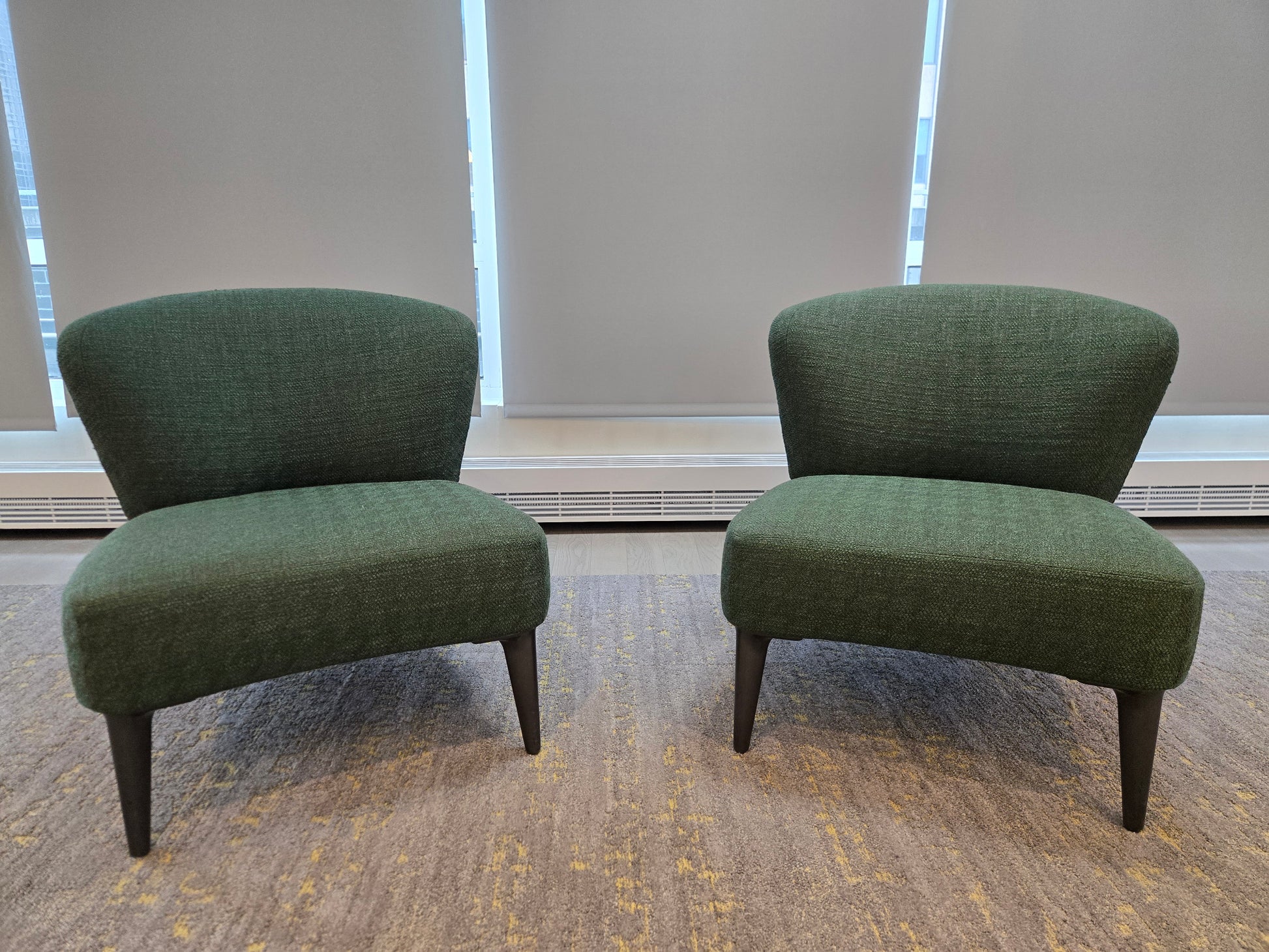 The Minotti Aston Armchairs – A Pair are a luxurious and contemporary seating set that exemplify the refined design and craftsmanship Minotti is known for. Each armchair features a sculpted silhouette with a gently curved back and padded arms that create a cocoon-like feel.