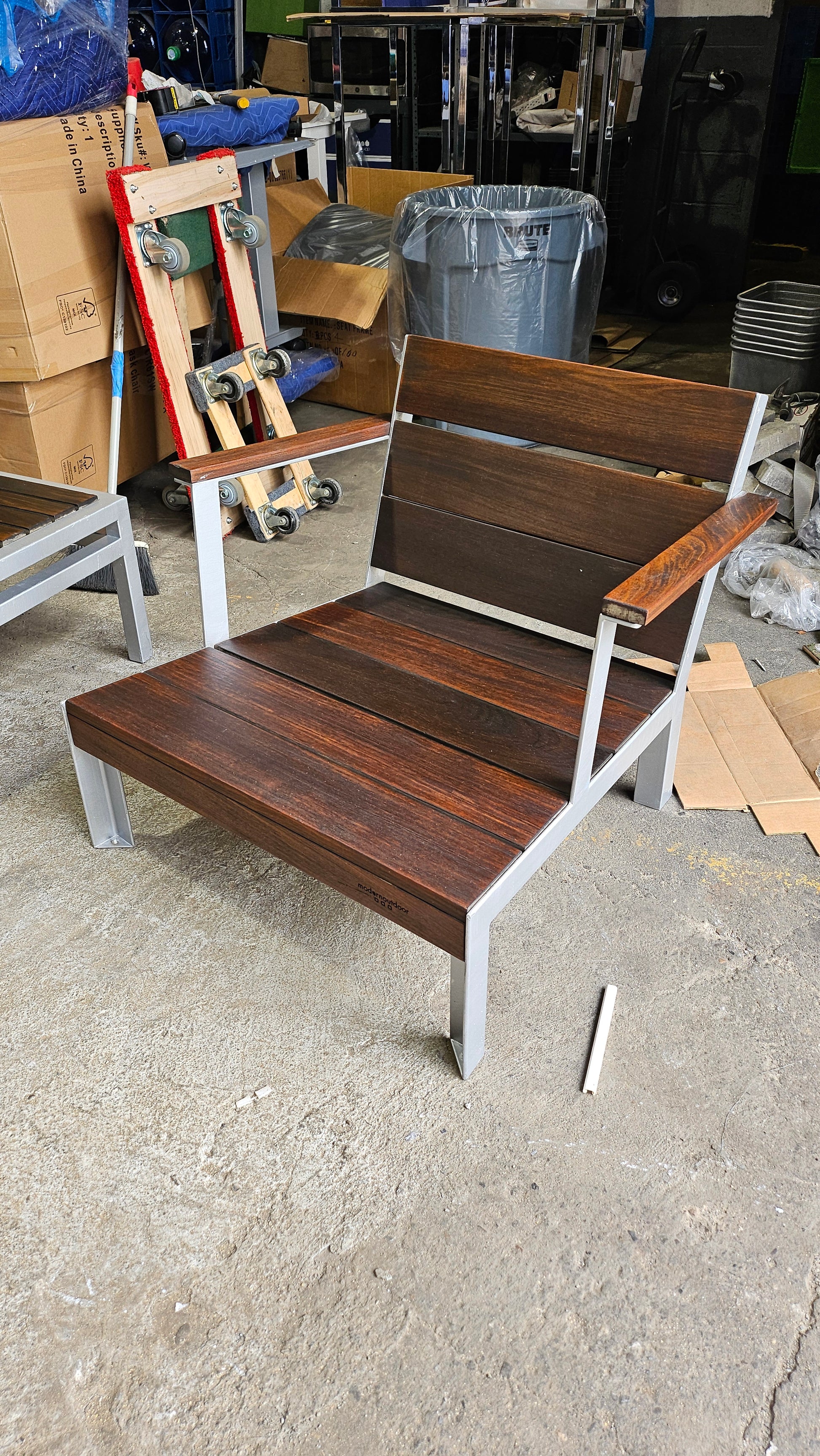 The Etra modern outdoor furniture collection blends casual elegance with durable, architectural design, making it suitable for both outdoor and indoor use. Its frame features powder-coated carbon steel, mitered and ground for a seamless, refined look.