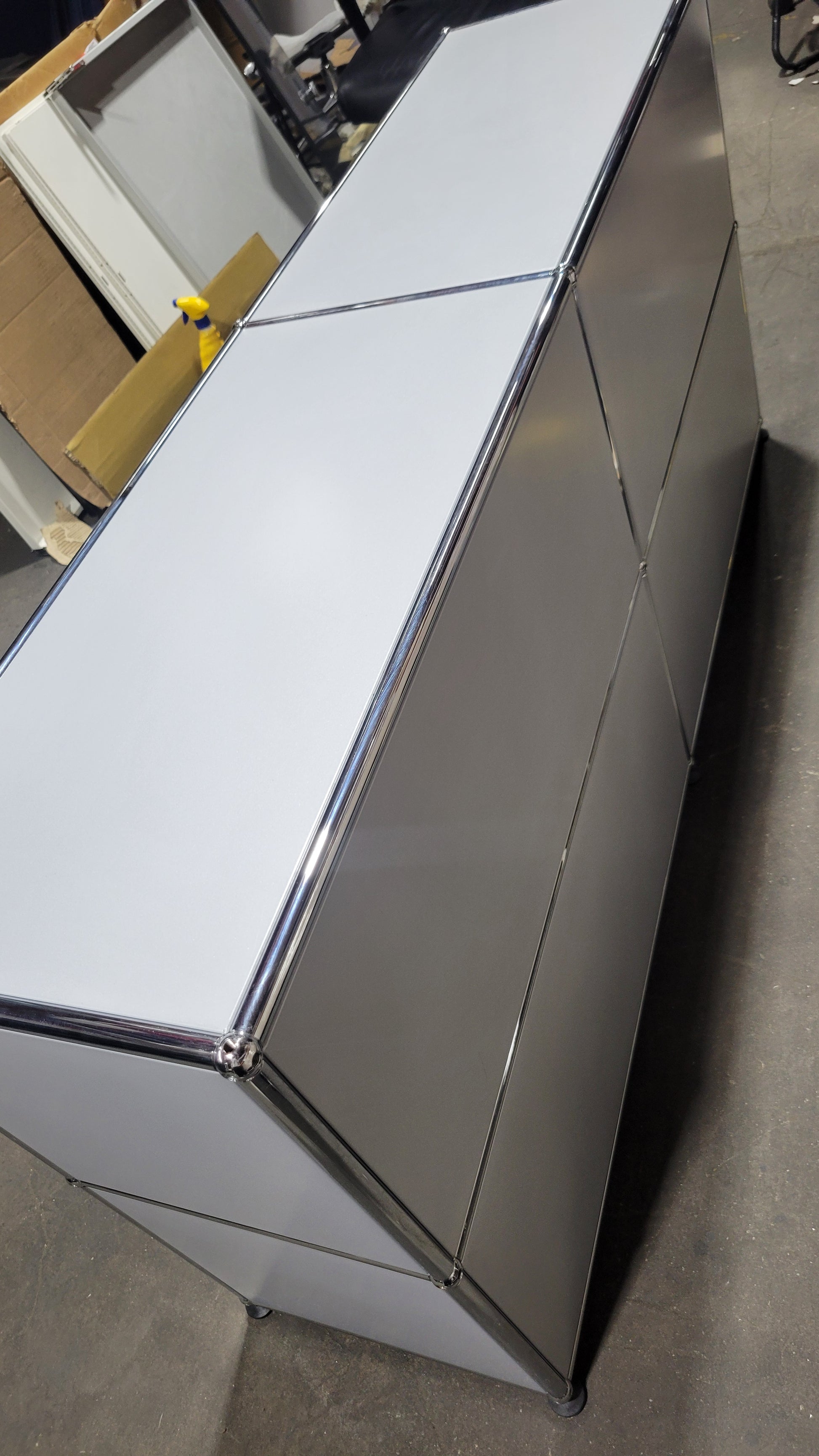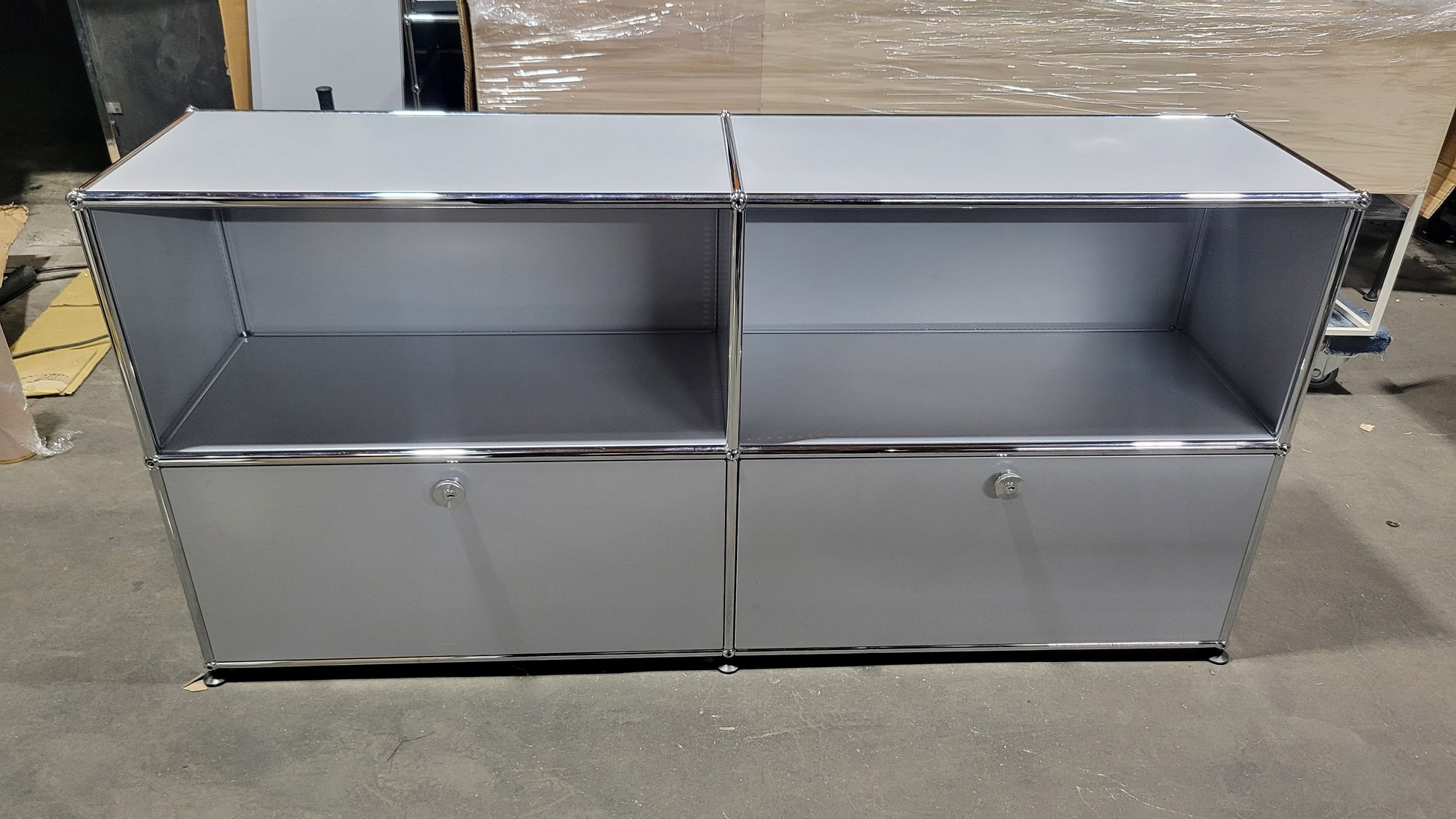 USM Haller 2x2 Cabinet / Dresser with 2 Shelves and 2 Drawers in Matte Silver