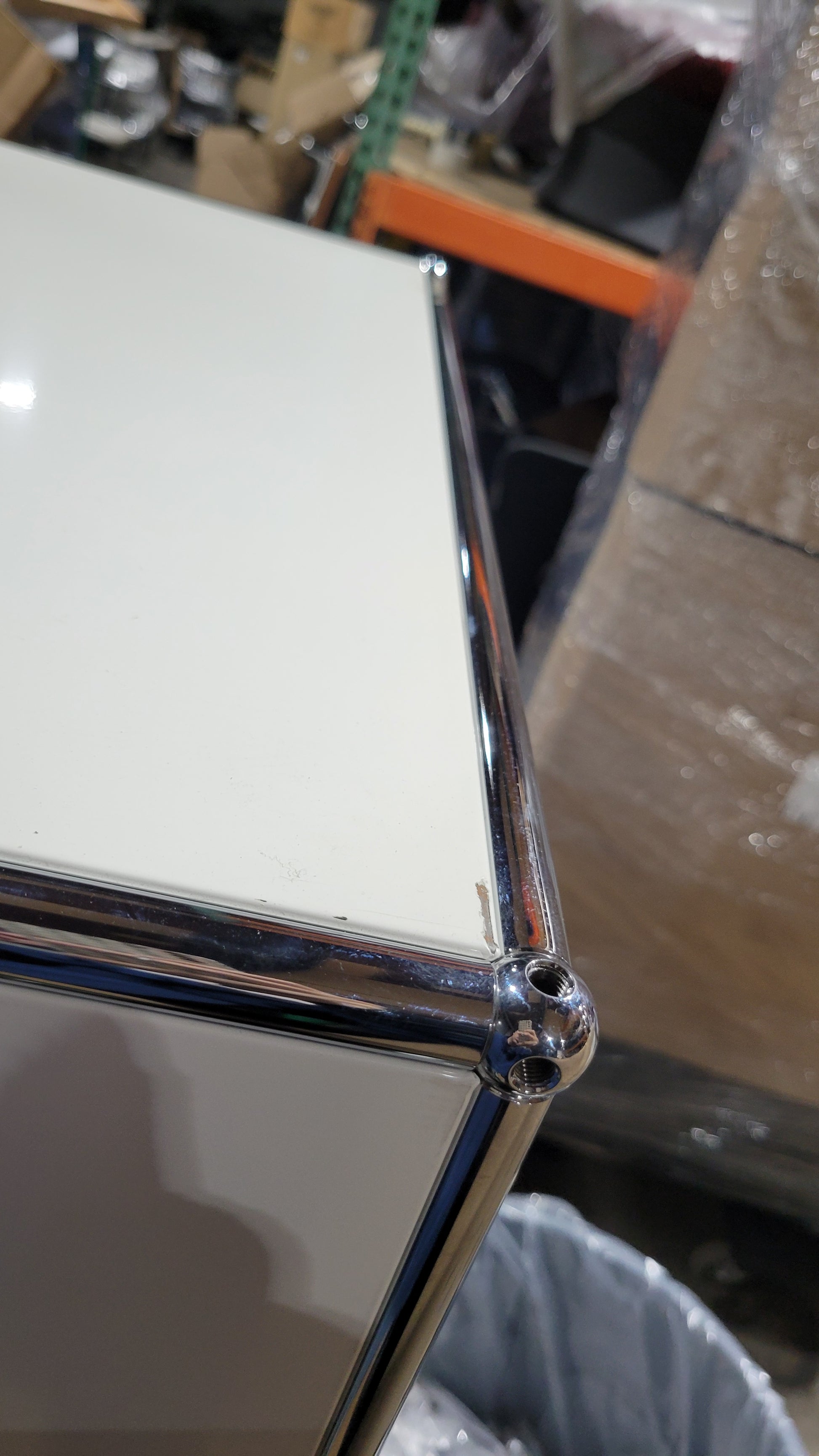 Measuring 30 inches wide, 20 inches deep, and 57 inches high, it delivers generous storage in a compact footprint. The crisp white panels and chrome-plated steel structure create a timeless look that works effortlessly in living rooms, offices, bedrooms, or entryways.