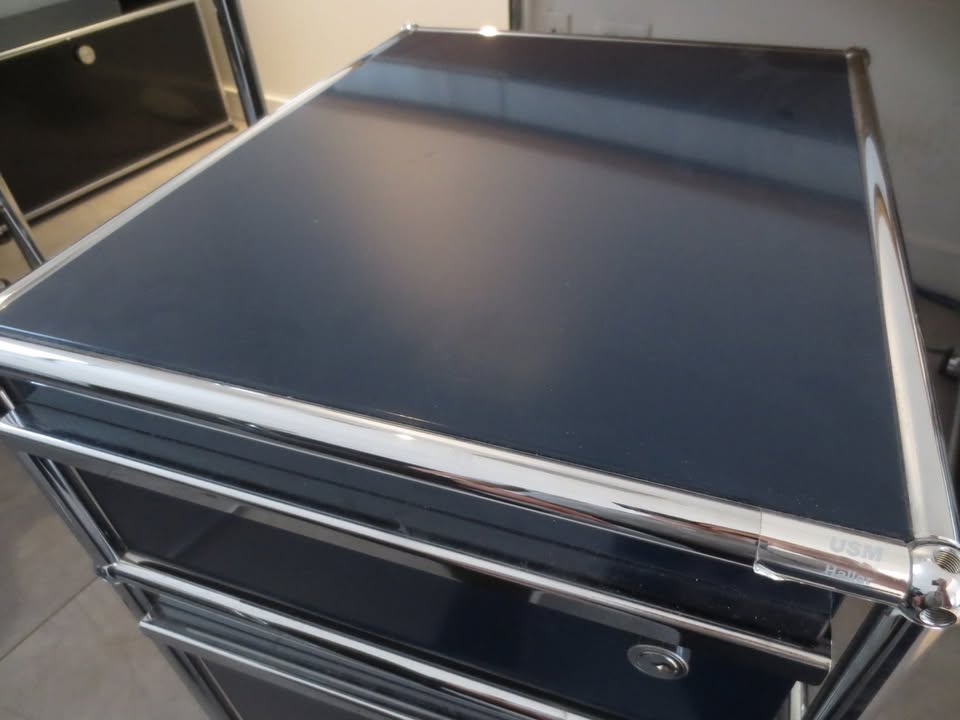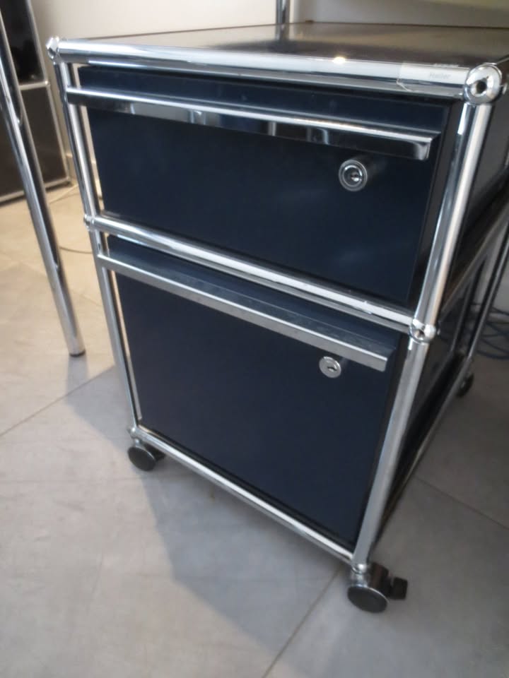 The USM Haller Rolling 2-Drawer Pedestal in Steel Blue is a versatile and modern storage piece that combines functionality with timeless design. Built with USM’s signature durable steel frame in a refined Steel Blue finish, it offers two spacious drawers for organized storage.