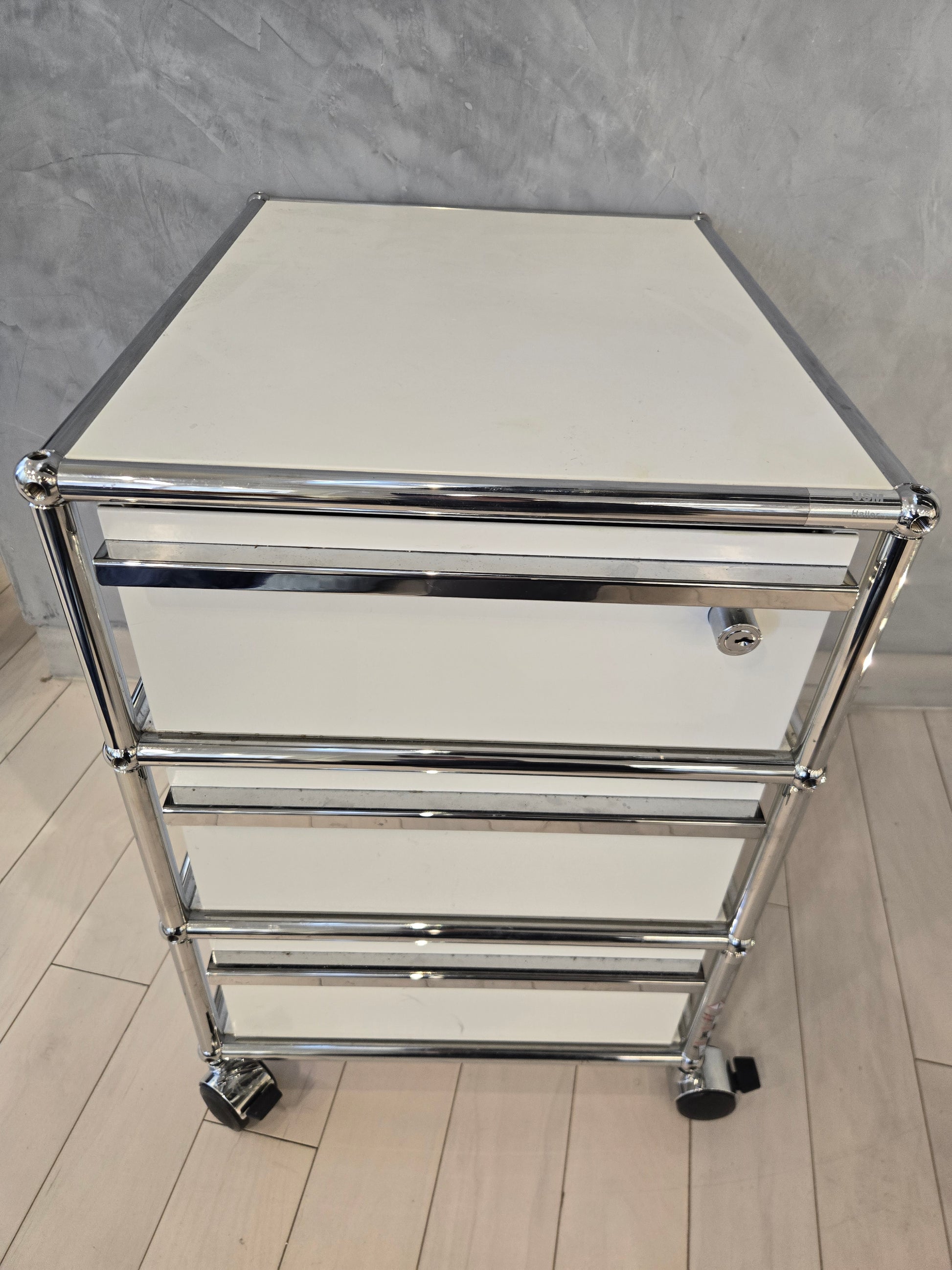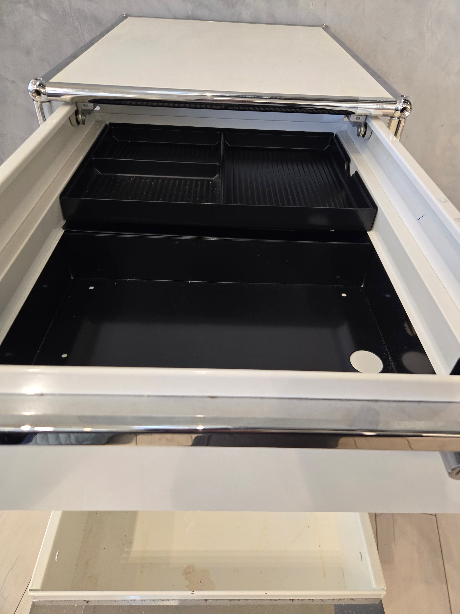 USM Haller Rolling Nightstand / Pedestal File Cabinet 3-Drawer in White