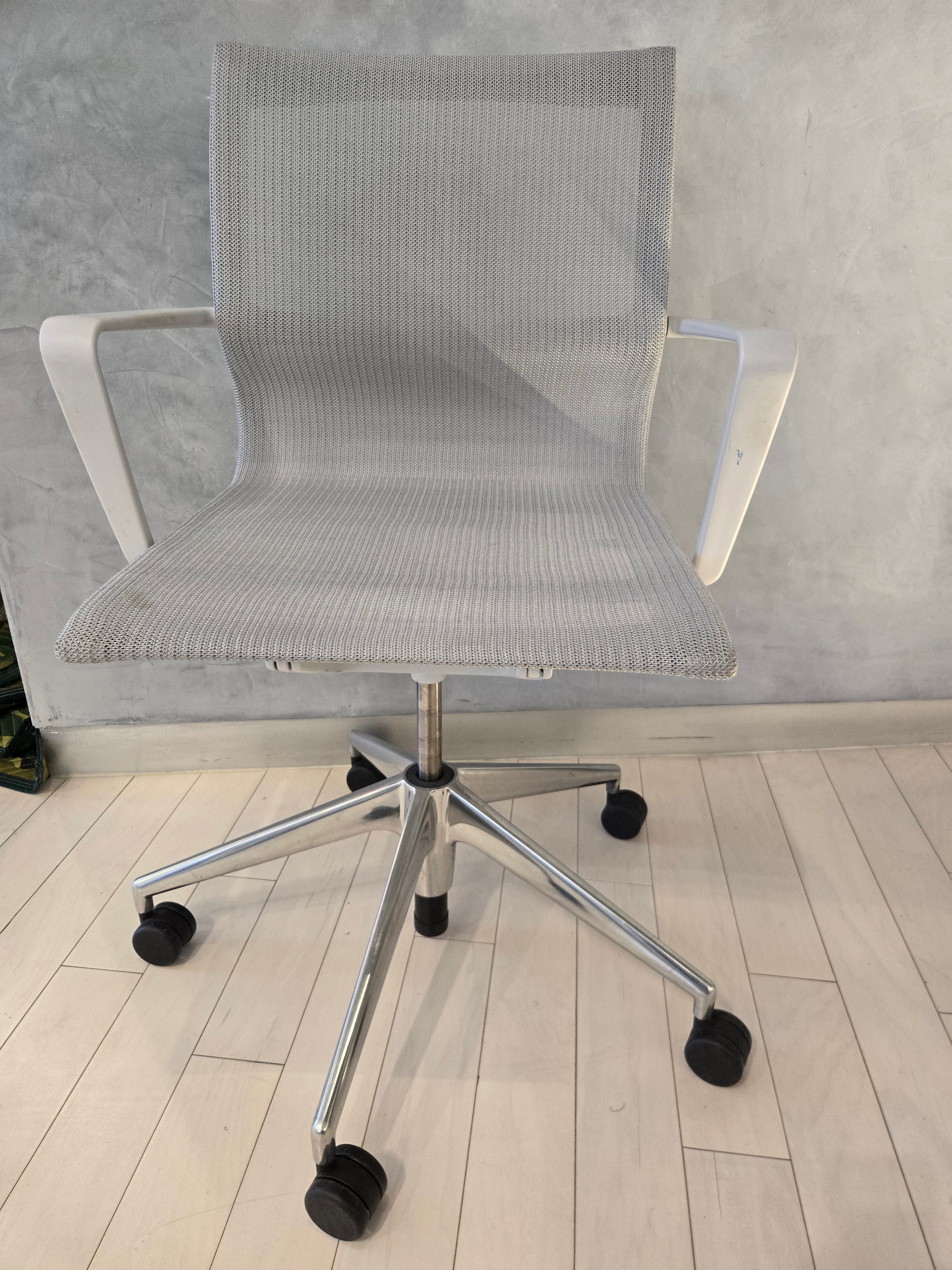 The Vitra Physix Chair in Mineral is a modern task chair that blends dynamic ergonomics with a sleek, sculptural profile. Designed to support natural movement and comfort throughout the day, the Physix features a flexible backrest and a contoured seat that respond to shifts in posture while maintaining excellent support.