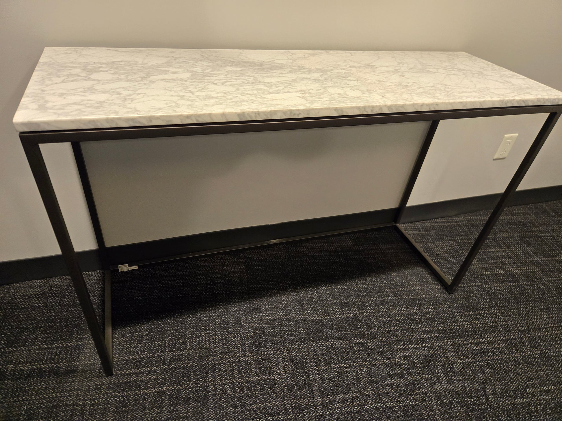 The marble surface provides a smooth, refined platform for display or storage, while the open frame keeps the piece feeling light and versatile in a range of interiors, from urban lofts to transitional homes. Its balanced proportions make it ideal for hallways, living rooms, or behind sofas where refined style and everyday functionality meet.