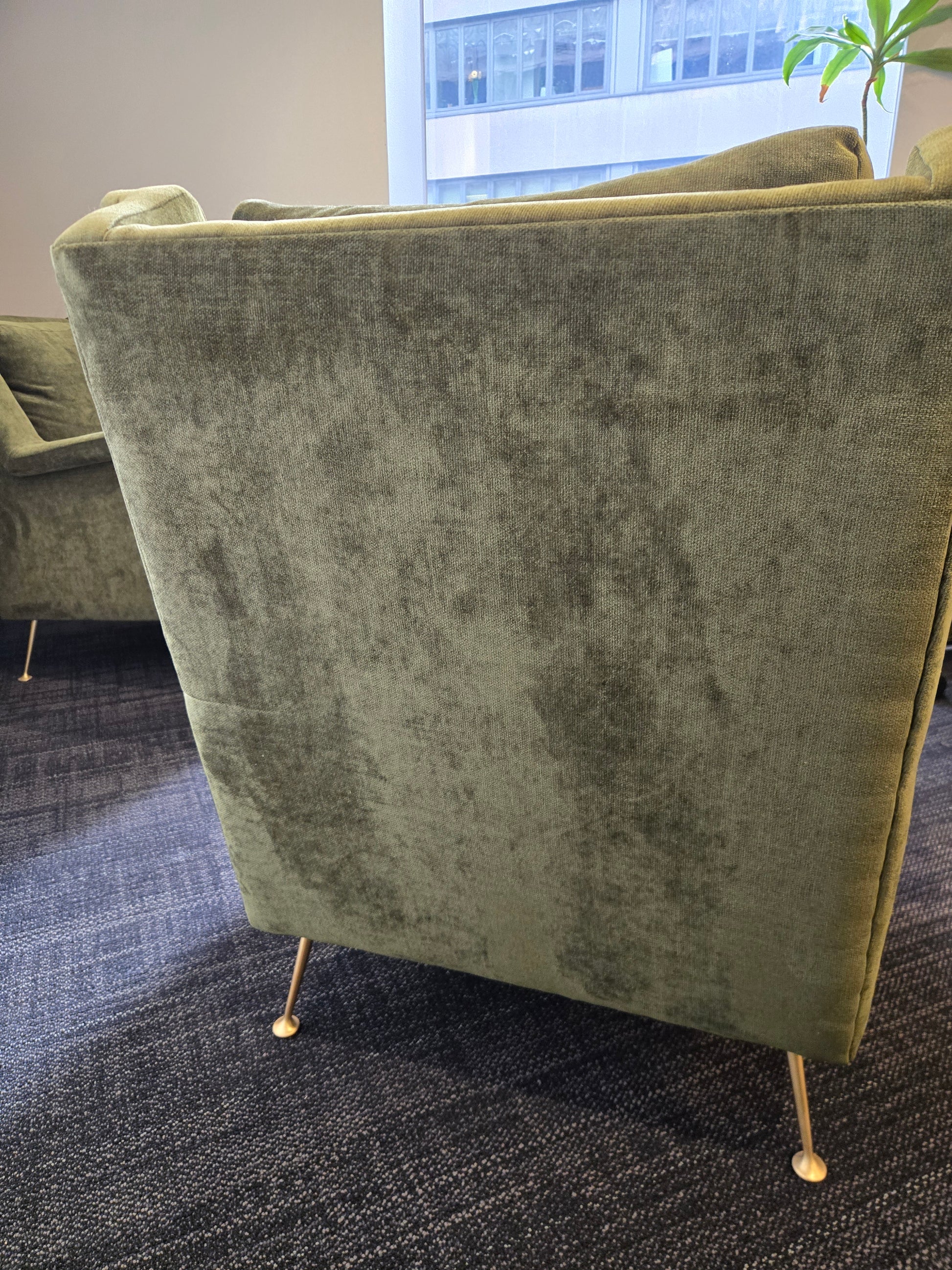West Elm Carlo Mid-Century Lounge Chair in Green Velour